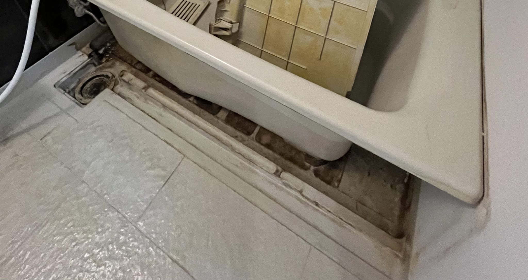 浴室の清掃事例です。浴槽には「エプロン」というカバーがついており、その中はカビだらけ、、、。今回はそんな浴槽エプロン内を綺麗に清掃させていただきました!