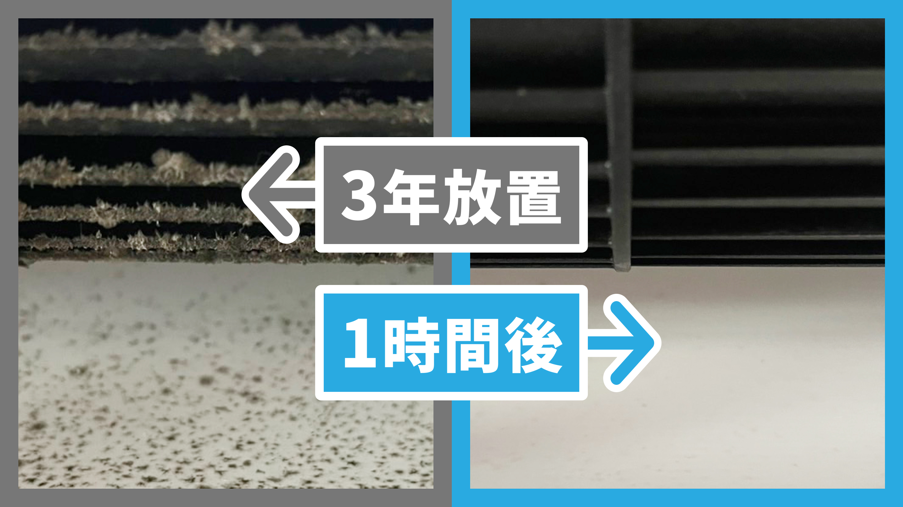 購入後3年間使用したエアコンを掃除したいと、今年赤ちゃんが生まれたばかりのお客様からご依頼いただきました。内部を見てみると、カビやホコリだらけ。3年でこんなに汚れていたのか、、、!ととても驚かれていました。そんなエアコンを綺麗にするまでの清掃の様子をご覧ください。